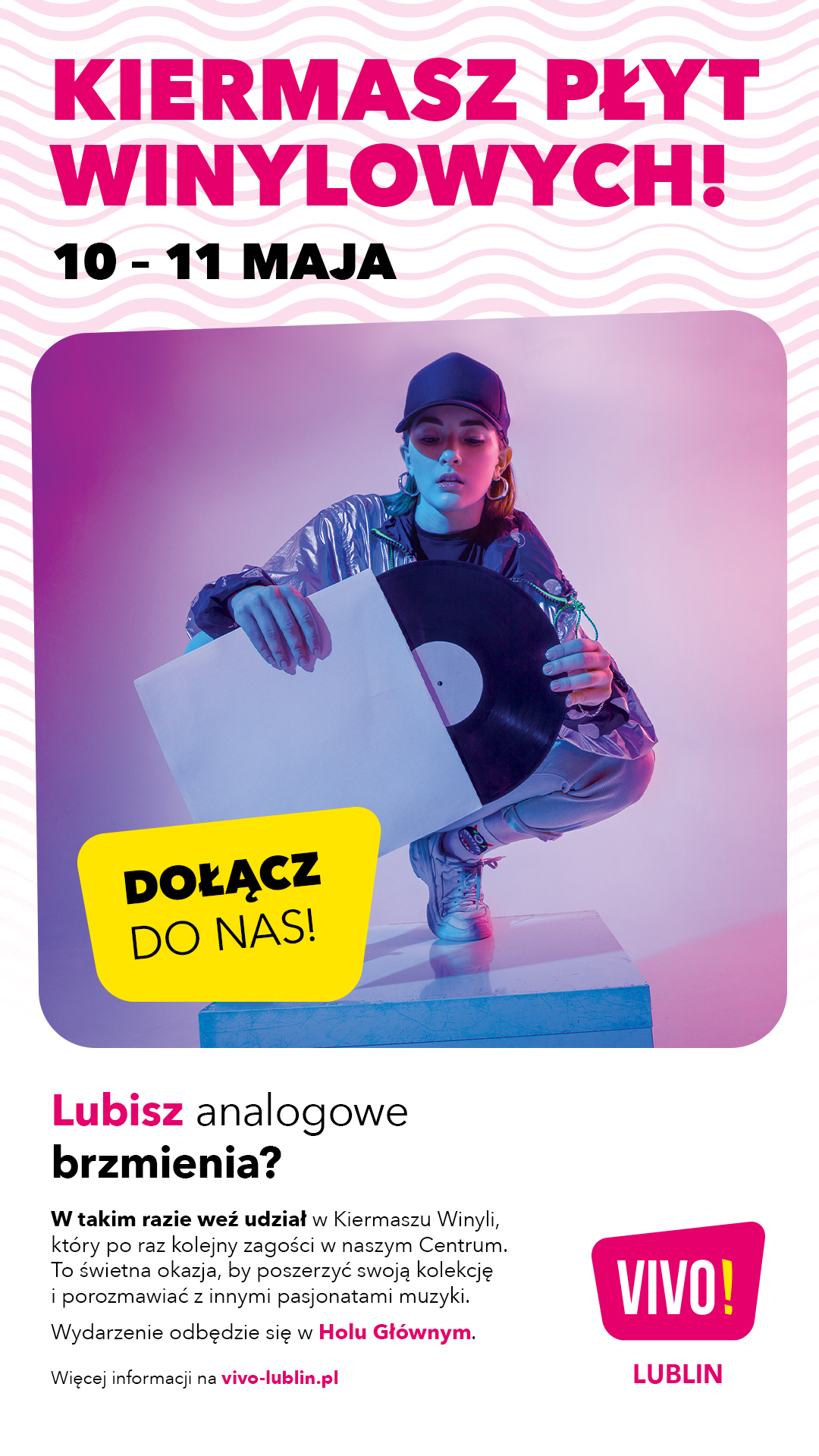 Wszystkich miłośników muzyki zapraszamy do odwiedzenia centrum przy Al. Unii Lubelskiej już 10 i 11 maja w godz. 9:00-21:00 - właśnie wtedy odbędzie się kolejna edycja Kiermaszu Płyt Winylowych, płyt CD i kaset magnetofonowych. Podczas wydarzenia w VIVO! Lublin gościć będzie wielu wystawców z całej Polski. Znaleźć będzie można nowe tytuły wydawnicze i archiwalne wydania kultowych płyt, a wybrane egzemplarze również przesłuchać na miejscu. Kiermasz odbędzie się w Holu Głównym na poziomie 0.