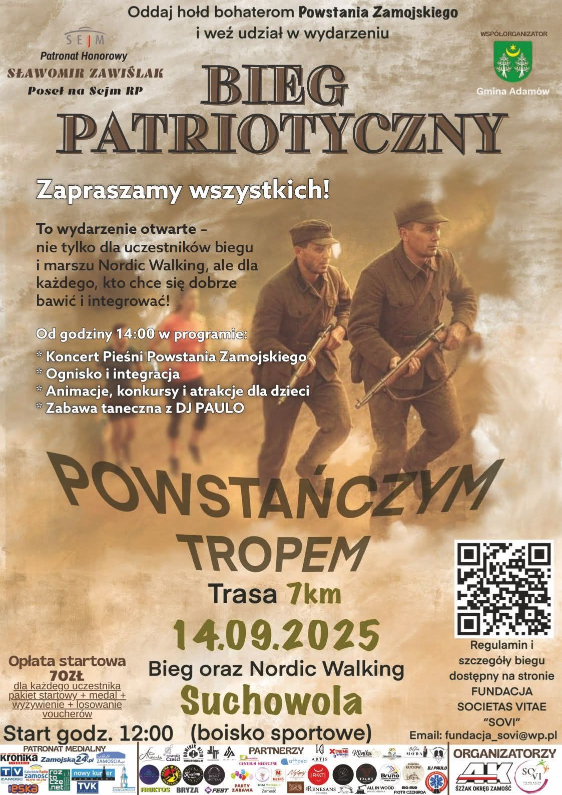 👉 To wydarzenie łączy historię, ruch, wspólnotę i radość z bycia razem. Biegiem lub marszem chcemy uczcić Bohaterów Powstania Zamojskiego, a jednocześnie spędzić ten czas wspólnie - rodzinnie, radośnie, lokalnie i z dumą.