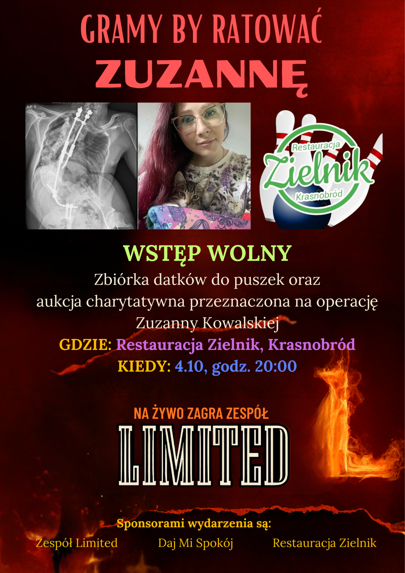Każdy z nas może pomóc. Liczy się każdy gest – wpłata, udział w licytacji, przyjście na koncert, podanie informacji dalej. Dla nas to niewielki wysiłek, dla Zuzi – różnica pomiędzy bezsilnością a nadzieją.