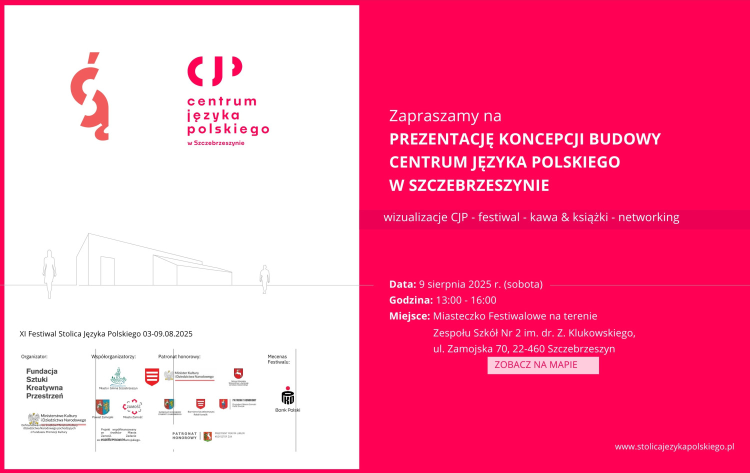 9 sierpnia w Szczebrzeszynie zostanie podpisany list intencyjny dotyczący utworzenia Centrum Języka Polskiego w Szczebrzeszynie - pierwszego w Polsce ośrodka upowszechniania dziedzictwa i rozwoju języka ojczystego. Deklaracje współpracy w dalszych działaniach, mających na celu powołanie instytucji złożą Jarosław Stawiarski – Marszałek Województwa Lubelskiego, Stanisław Grześko – Starosta Zamojski, Rafał Kowalik - Burmistrz Szczebrzeszyna oraz pomysłodawca i inicjator powołania CJP – Piotr Duda prezes Fundacji Sztuki Kreatywna Przestrzeń.