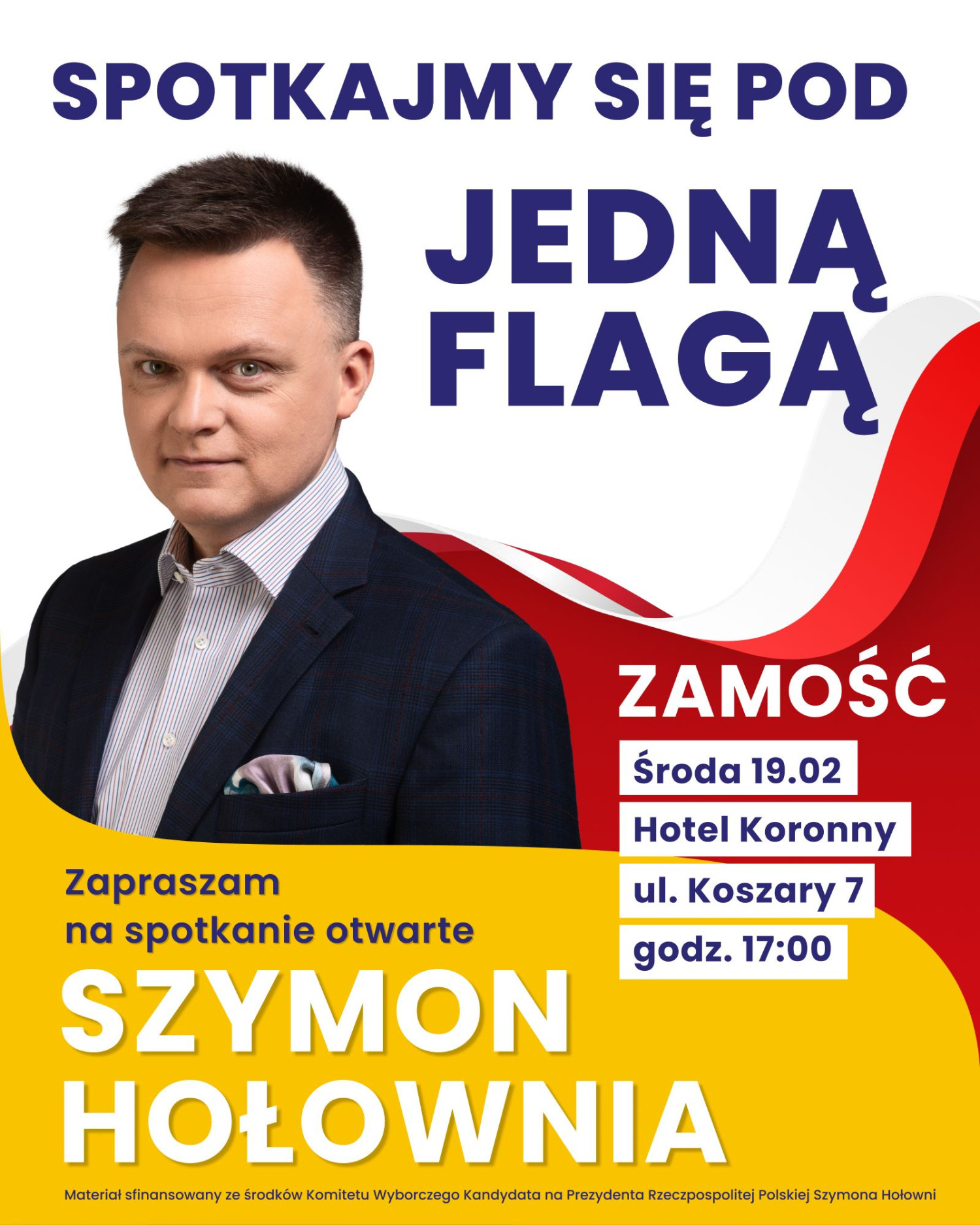 Już w najbliższą środę 19 lutego kandydat na Prezydenta RP Szymon Hołownia odwiedzi Miasto Zamość.