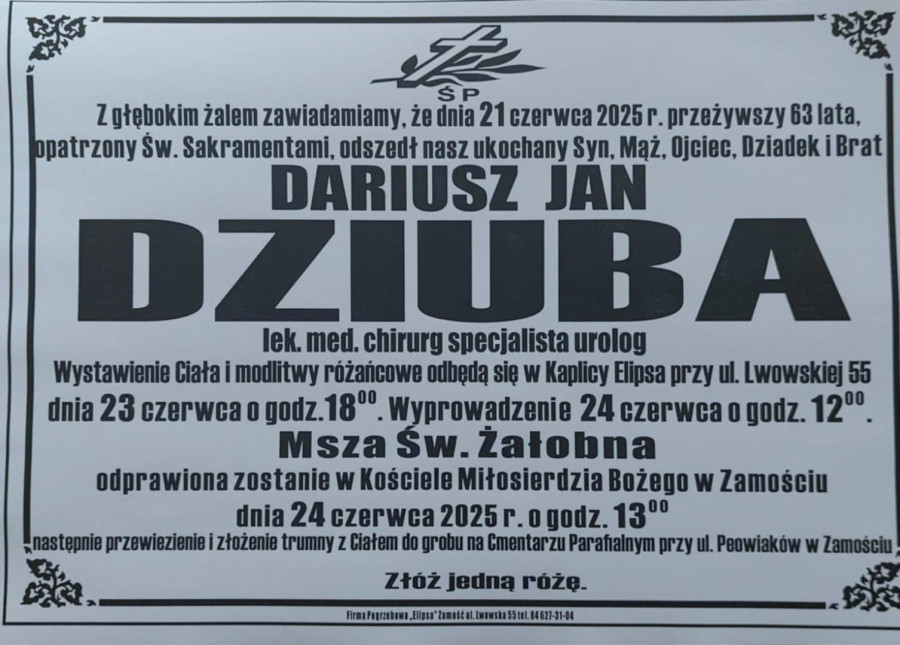 Śmierć dr. Dziuby to bolesna strata dla środowiska lekarskiego, współpracowników, pacjentów i przyjaciół. Pozostanie w pamięci jako sumienny lekarz, człowiek oddany swojej pracy i osobowość, której obecność miała znaczenie dla wielu osób.