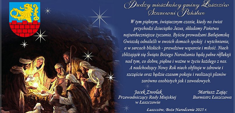 Życzenia świąteczne na Boże Narodzenie i Nowy Rok 2026 składa Gmina Łaszczów.