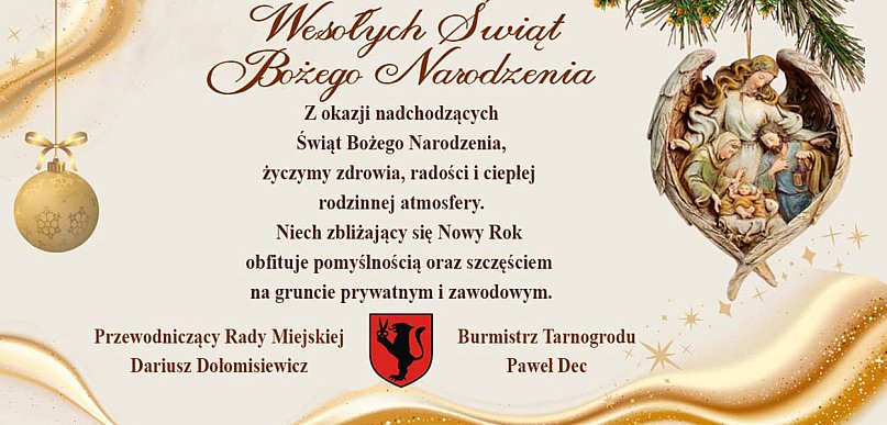 Życzenia świąteczne na Boże Narodzenie i Nowy Rok 2026 składa Urząd Miejski w Tarnogrodzie.
