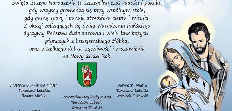 Życzenia składa na Boże Narodzenie i Nowy Rok 2026 Urząd Miasta Tomaszów Lubelski.