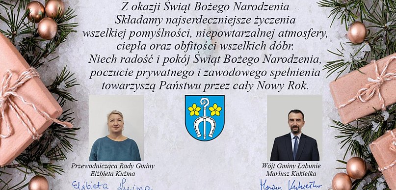 Życzenia świąteczne na Boże Narodzenie i Nowy Rok 2026 składa Gmina Łabunie.
