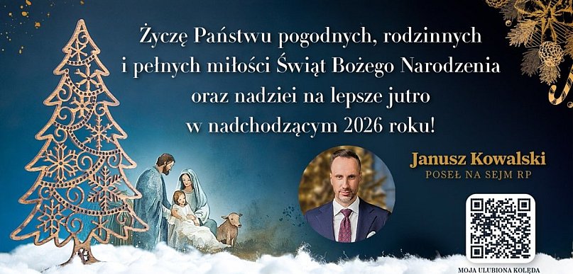 Życzenia świąteczne na Boże Narodzenie i Nowy Rok 2026 składa Janusz Kowalski Poseł na Sejm RP.