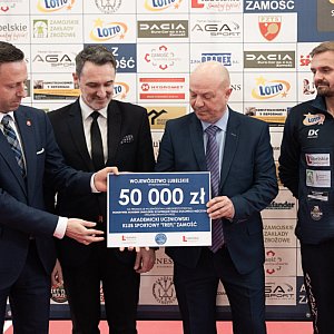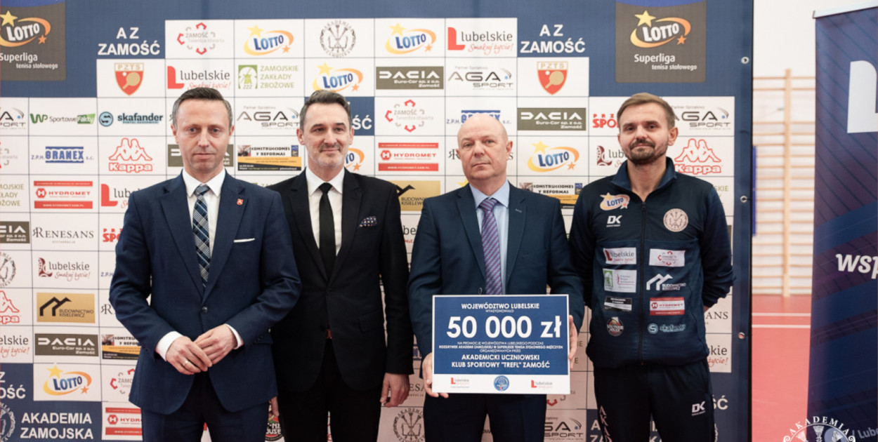 - Z dumą wspieramy lubelski sport, także ten w Zamościu. Drużyna Akademia Zamojska Zamość to absolutnie topowy zespół Superligi tenisa stołowego. Dlatego po raz kolejny przedłużamy umowę sponsorską z tą drużyną. Ponadto bardzo nam zależy, by w Zamościu rozwijały się różne dyscypliny sportu, w tym tenis stołowy, który w tym mieście funkcjonuje świetnie. Cieszę się, że mogę osobiście wręczyć czek z dofinansowaniem na kolejny rok występów. Zawodnicy tej drużyny nie tylko reprezentują swoje miasto, województwo lubelskie w rozgrywkach krajowych, ale również w rozgrywkach europejskich, z czego jesteśmy niezwykle dumni – mówił Michał Mulawa, wicemarszałek województwa lubelskiego.