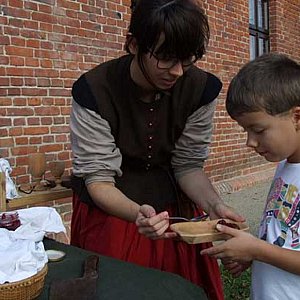 W niedzielę przyszła pora na historyczne gotowanie. Do obozowej kuchni rozstawionej na Plantach na terenie strzelnicy Historica Experimentum (przy budynku Muzeum Rzeźby prof. Koniecznego) zapraszała Małgorzata Momot. Członkini Zamojskiego Bractwa Rycerskiego wspólnie z Katarzyną Kamińską, koordynatorem całego przedsięwzięcia, przyrządzały różne przysmaki. Uczestnicy warsztatów mogli zobaczyć jak przyrządzano posiłki i spróbować dawnego jedzenia. Robiono podpłomyki oraz kurczaka na maśle z rodzynkami w zalewie piwnej. Były też dodatki w postaci serów i marmolad.