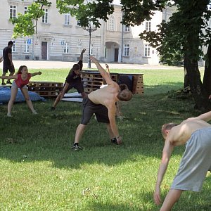 Po pokazach można było wziąć aktywny udział w rozgrzewce a po niej uczestniczyć w warsztatach parkour oraz free run.