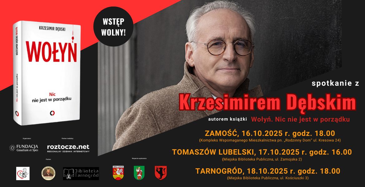 Historia Wołynia to rana, która mimo upływu lat wciąż się nie zabliźniła. To także temat, o którym wciąż mówi się zbyt cicho – pomimo tysięcy ofiar i dramatów, jakie rozegrały się w 1943 roku. Krzesimir Dębski – wybitny kompozytor, dyrygent i publicysta – postanowił o tej historii mówić głośno, bez lęku i bez upiększeń. Już wkrótce spotka się z mieszkańcami Zamościa, Tomaszowa Lubelskiego i Tarnogrodu, by opowiedzieć o swojej książce „Wołyń. Nic nie jest w porządku” – wstrząsającej i głęboko osobistej opowieści o rodzinie, historii i prawdzie.