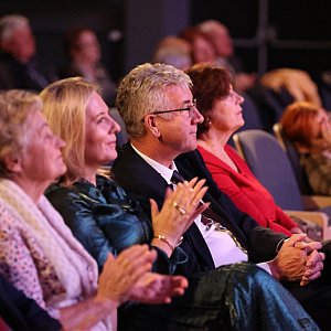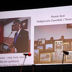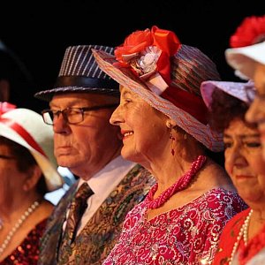 Sala widowiskowa TDK wypełniła się po brzegi. Jubilatom gratulacje i życzenia dalszych sukcesów artystycznych złożyli Burmistrz Tomaszowa Lubelskiego Wojciech Żukowski oraz Monika Pikuła, koordynator ds. polityki senioralnej. Słowa uznania skierowali również przedstawiciele Tomaszowskiego Domu Kultury, chóru Tomaszowiacy oraz Tomaszowskiego Zespołu Teatralnego z panią Marią Kozyrą na czele.