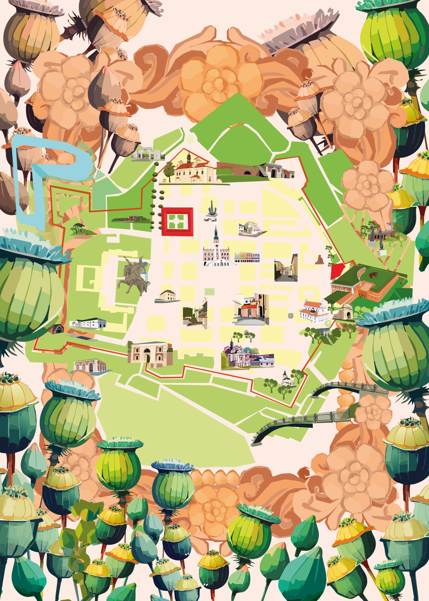 Cykl dwunastu grafik tworzy wizualną podróż przez Zamość znany i nieoczywisty. Artystka sięga po architekturę renesansowego miasta, detale kamienic, ornamenty, motywy dawnych tkanin oraz inspiracje zaczerpnięte bezpośrednio z muzealnych zbiorów. Każdy element został przetworzony, przefiltrowany przez współczesne spojrzenie – bez dosłowności, za to z ogromnym szacunkiem dla źródeł.