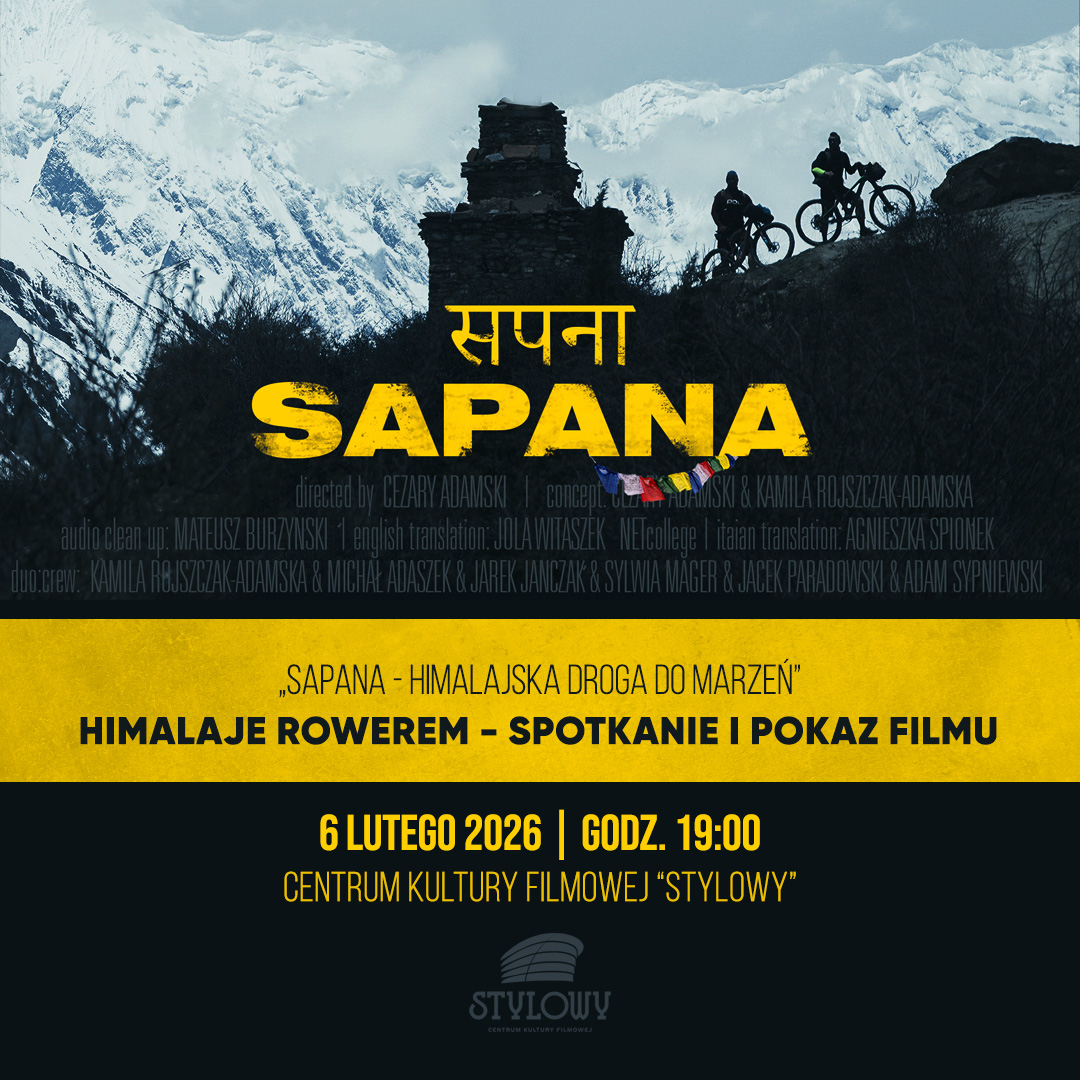 Centrum Kultury Filmowej „Stylowy” w Zamościu serdecznie zaprasza pokaz filmu „SAPANA – himalajska droga do marzeń”. To nie tylko dokument z wyprawy, ukazujący zmagania rowerzystów z najwyższymi górami świata, ale przede wszystkim inspirująca opowieść o marzeniach i ich realizacji.