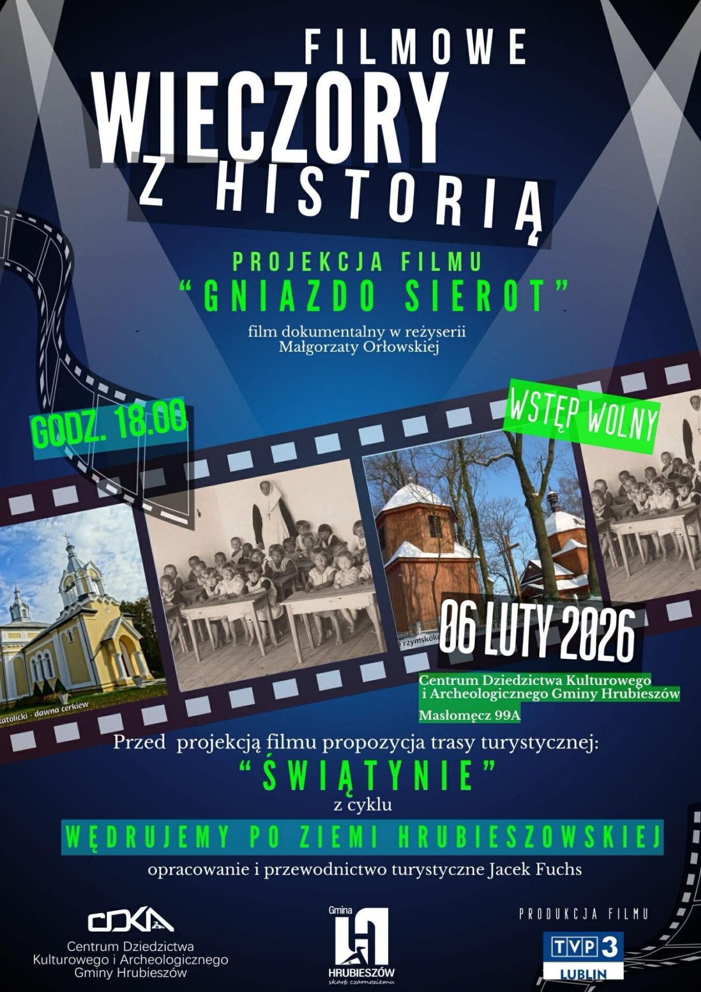 Centrum Dziedzictwa Kulturowego i Archeologicznego Gminy Hrubieszów w Masłomęczu zaprasza na kolejny wieczór z cyklu „Filmowe Wieczory z historią”. Już 6 lutego (piątek) o godz. 18.00 odbędzie się projekcja filmu dokumentalnego „Gniazdo Sierot” w reżyserii Małgorzaty Orłowskiej.
