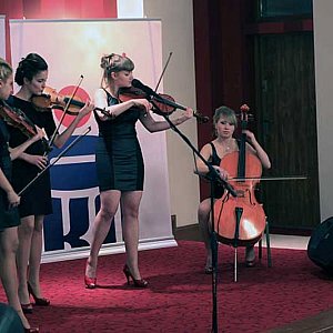 Zamość. Hotel Artis - Sala Kryształowa. Gala MORANDO2012 (19 stycznia) z częścią artystyczną, której bohaterkami były cztery instrumentalistki z zespołu Red Heels.