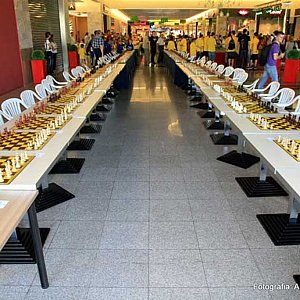 Przy planszach w zamojskiej Galerii Twierdza zasiadło 102 szachistów, głównie uczniów zamojskich szkół, a ich przeciwnikiem był zamościanin - Marcin Dziuba, jedyny arcymistrz szachowy w województwie lubelskim.