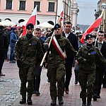 11 listopada 2025 - Marsz Niepodległości ulicami miasta z Rynku Wielkiego pod Pomnik Marszałka Józefa Piłsudskiego i złożenie kwiatów pod Pomnikiem Marszałka Józefa Piłsudskiego przez Ojców Niepodległości w imieniu Mieszkańców Zamościa. fotorelację wykonał Paweł Nowak
