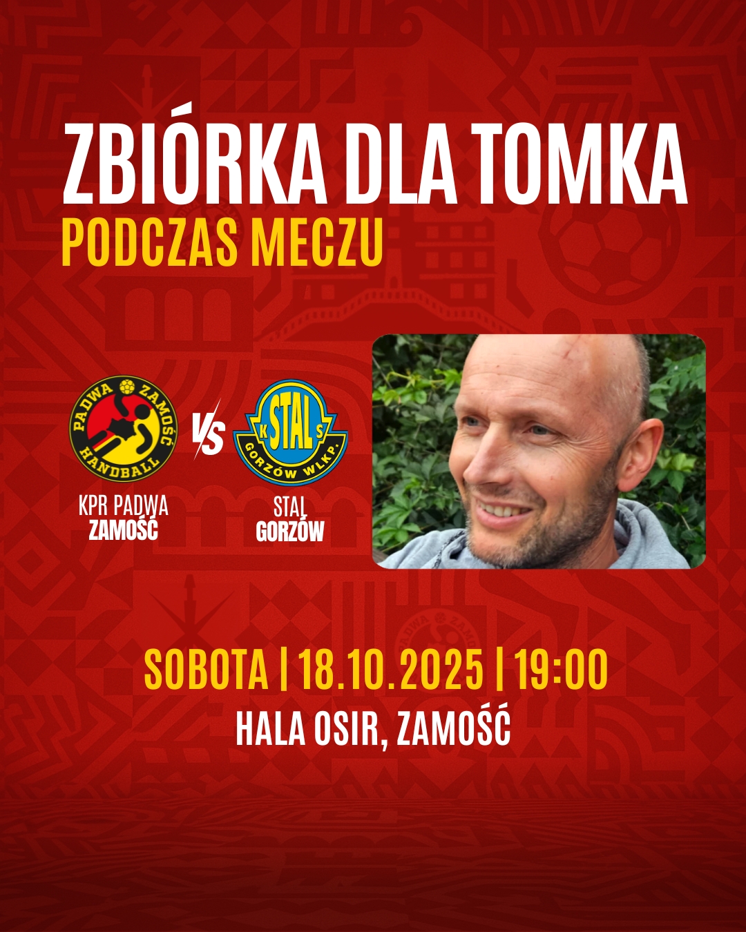 Dzisiaj 18 października mecz KPR Padwa Zamość – KS Stal Gorzów Wielkopolski w hali OSiR w Zamościu (godz. 19:00) stanie się czymś więcej niż sportowym wydarzeniem. Na trybunach pojawią się wolontariusze z puszkami – całość zebranych środków trafi na leczenie Tomka. Kibice Padwy Zamość wielokrotnie pokazali, że mają wielkie serca. Teraz znów mogą udowodnić, że sport jednoczy – nie tylko na parkiecie, ale przede wszystkim w chwilach, gdy liczy się ludzkie życie.