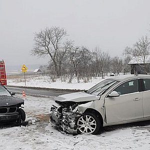 37-letni kierujący BMW, trafił do szpitala po tym jak na łuku drogi w jego samochód uderzył kierowca opla, który nagle stracił panowanie nad pojazdem i wjechał na przeciwny pas ruchu. Prawdopodobnie przyczyną zdarzenia była prędkość z jaką poruszał się kierowca opla, niedostosowana do panujących na drodze warunków.