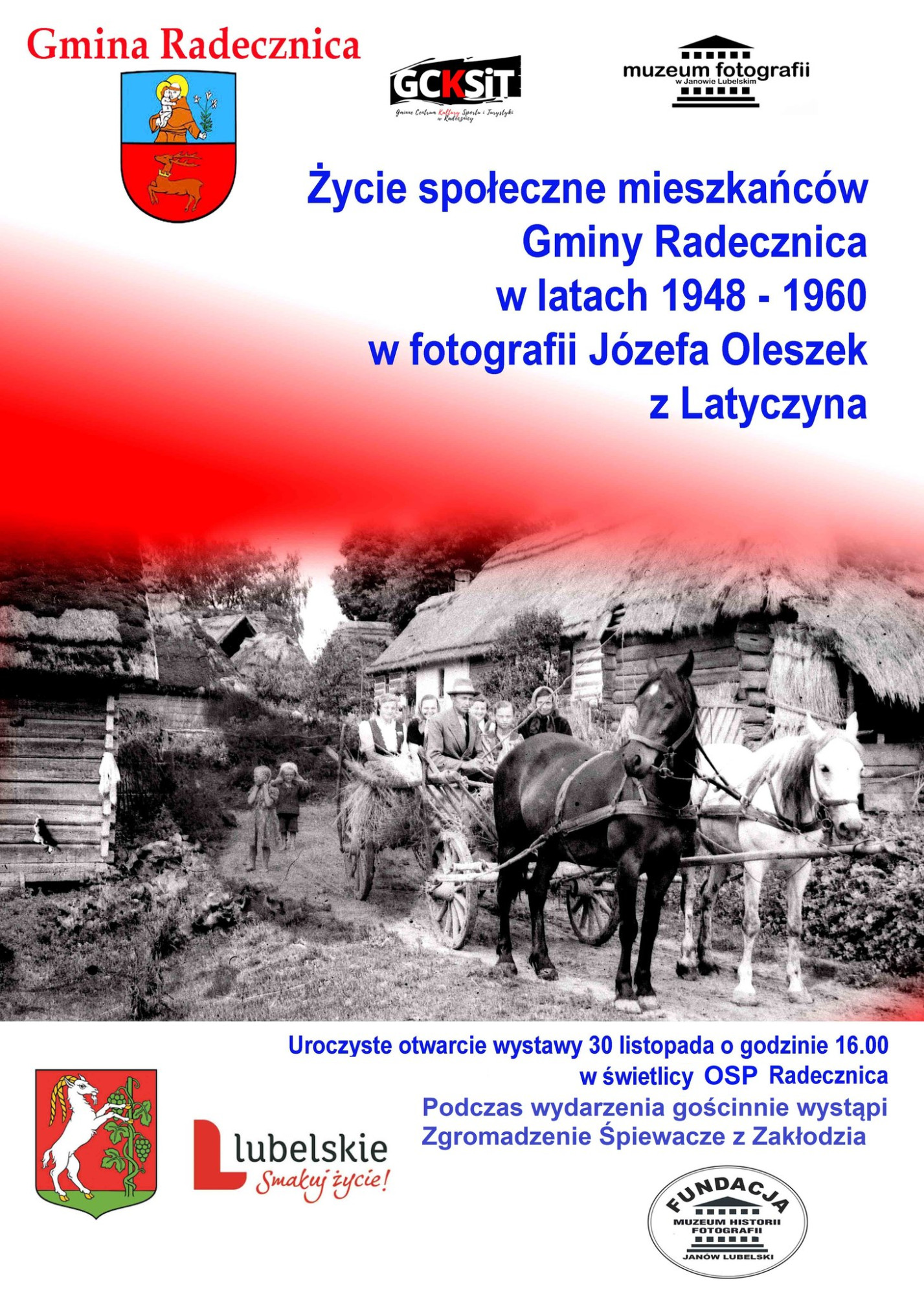 W najbliższą niedzielę, 30 listopada o godz. 16:00, w świetlicy OSP w Radecznicy odbędzie się uroczyste otwarcie niezwykłej wystawy fotograficznej pt. „Życie społeczne mieszkańców Gminy Radecznica w latach 1948–1960 w fotografii Józefa Oleszka z Latyczyna”.