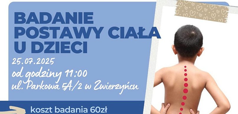 Baza Przyjaźni w Zwierzyńcu organizuje w najbliższy piątek 25 lipca od godz. 11:00 badanie postawy ciała u dzieci. Zainteresowane osoby proszone są o wcześniejszy kontakt.
