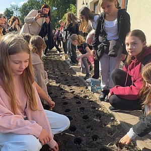 W środę, 8 października, przed budynkiem hospicjum odbyło się uroczyste sadzenie żonkili – kwiatów symbolizujących nadzieję. W wydarzeniu wzięło udział kilkaset uczniów ze szkół z całej diecezji zamojsko-lubaczowskiej. Zanim rozpoczęto sadzenie cebulek, uczestników spotkania przywitali i podziękowali za dotychczasowe wsparcie ks. Zbigniew Lesiczka – dyrektor hospicjum oraz Mariusz Kukiełka – Wójt Gminy Łabunie.