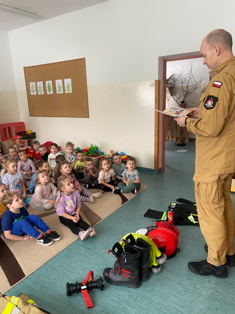 W miesiącu styczniu strażacy spotykali się z dziećmi w przedszkolach w ramach prewencji społecznej PSP. Podczas czterech wizyt informowaliśmy o zagrożeniach wynikających z sezonu grzewczego, zaletach związanych z wyposażeniem domów, mieszkań w czujki dymu i czujniki tlenku węgla.