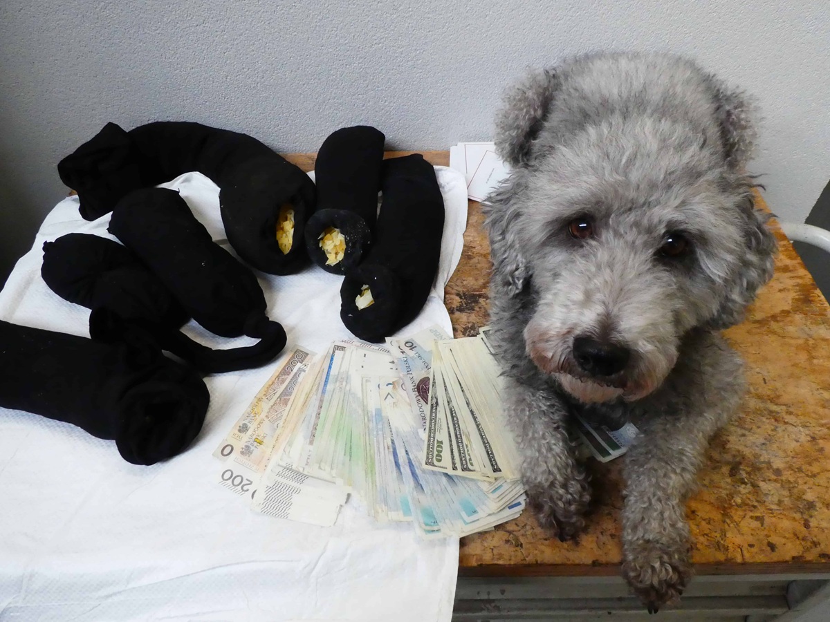 W trakcie rewizji okazało się, że bursztyn to nie jedyny towar, którego mężczyzna nie zgłosił do kontroli celnej. W jego bagażu funkcjonariusze Służby Celno-Skarbowej znaleźli też gotówkę, w łącznej kwocie około 45 tys. zł. A każdy przewóz środków płatniczych o wartości co najmniej 10 tys. EUR musi być zgłoszony przy przekraczaniu granicy Unii Europejskiej. Przeciwko mężczyźnie wszczęte zostało postępowanie karne skarbowe. Na poczet grożącej kary grzywny wpłacił on 10 tys. zł. Ujawnienie gotówki było sukcesem pudelka służącego w lubelskiej Służbie Celno-Skarbowej. Pies ten szkolony jest do wyszukiwania waluty i papierosów, a kontrole prowadzone na przejściach granicznych są dla niego sprawdzianem i okazją do stałego doskonalenia umiejętności.