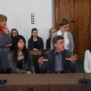 Obecni byli również dyrektorzy szkół polskich - Antoni Turzyniecki i Antoni Szostek, jak również pani Rossella Fossati - dyrektor szkoły włoskiej. Uczniowie zaprezentowali dotychczasowe działanie podjęte w ramach projektu - dotyczyły one przygotowania koncepcji architektoniczno-urbanistycznej modelowego obiektu agroturystycznego. Uczniowie zostali ciepło przyjęci przez prezydenta Andrzeja Wnuka i wiceprezydenta Andrzeja Zastąpiło, którzy zaoferowali pomoc władz Zamościa przy dalszej realizacji projektu. Po spotkaniu uczestnicy projektu udali się do Wydziału Budownictwa na konsultacje i prezentację.