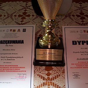 Drużyna z Zespołu Szkół Ponadgimnazjalnych Nr 2 im. T. Kościuszki w Zamościu zajęła 1 miejsce w Eliminacjach Wojewódzkich XXI Edycji Ogólnopolskiego Młodzieżowego Turnieju Motoryzacyjnego dla szkół ponadgimnazjalnych organizowanych przez Ośrodek Doskonalenia Techniki Jazdy WORD Lublin.
