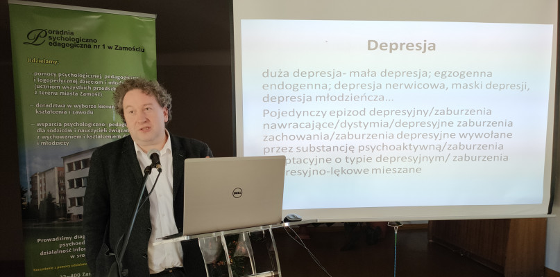Podczas konferencji dr n. med. Krzysztof Szwajca, specjalista psychiatra, psychoterapeuta, pracownik naukowy Kliniki Psychiatrii Dzieci i Młodzieży Katedry Psychiatrii Uniwersytetu Jagiellońskiego w Krakowie, poruszył tematykę związaną z depresją u dzieci i młodzieży, profilaktyką zjawiska, rozpoznawaniem wczesnych objawów, a także metodami pomocy.