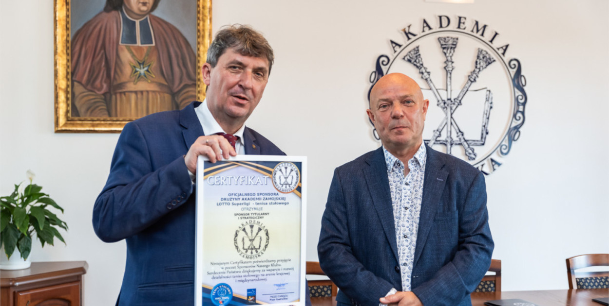 - Cieszymy się z osiągnięć drużyny w LOTTO Superlidze, a także sukcesów naszych studentów w Akademickich Mistrzostwach Europy w tenisie stołowym, gdzie nasi reprezentanci zdobyli aż pięć medali, z czego trzy złote. Jesteśmy zadowoleni z dotychczasowej współpracy i kontynuujemy nasze partnerstwo. Sport jest bowiem istotną sferą życia studenckiego. Mamy wiele sukcesów w tej dziedzinie nie tylko w tenisie stołowym, ale również w lekkoatletyce czy podnoszeniu ciężarów. Pamiętajmy, że w zdrowym ciele, zdrowy duch – powiedział rektor Akademii Zamojskiej dr hab. Paweł Skrzydlewski, prof. AZ.
