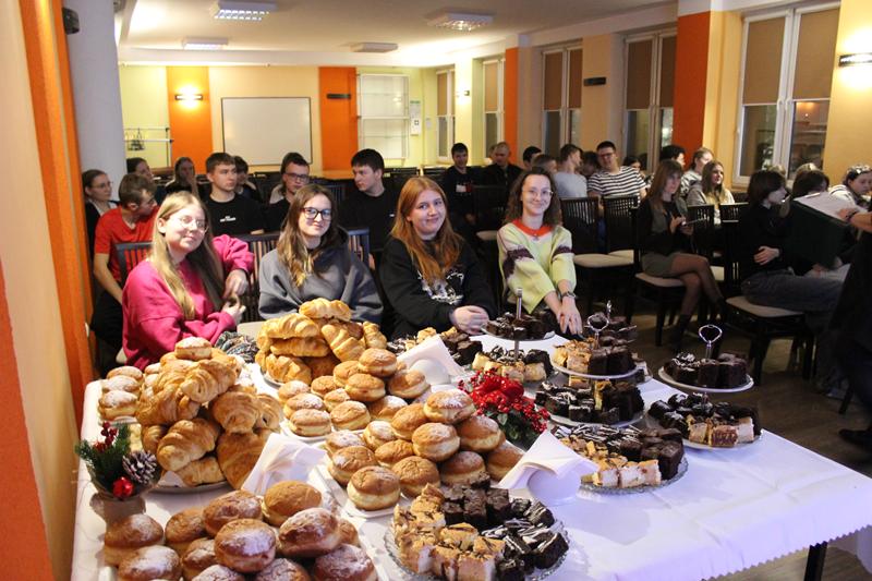 Wszyscy zgromadzeni z entuzjazmem włączali się w kolędowanie i wspólnie tworzyli magiczny, świąteczny klimat. Aula bursy wypełniła się muzyką, emocjami i radością, a każdy utwór był entuzjastycznie przyjmowany przez wychowanków i wychowawców. Wieczór Kolęd i Pastorałek pokazał, że muzyka naprawdę łączy pokolenia i potrafi wprowadzić w magiczny, świąteczny nastrój każdego. Na zakończenie kolędowania na uczestników czekał słodki poczęstunek. Organizatorzy podziękowali wszystkim, którzy byli z nami i wspólnie stworzyli niepowtarzalną, świąteczną atmosferę. To był koncert, który na długo pozostanie w pamięci uczestników.