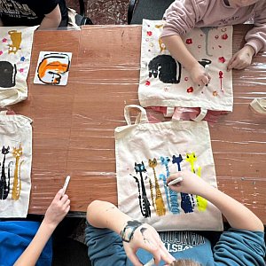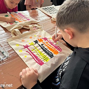 Podczas zajęć uczestnicy samodzielnie projektowali i malowali ekologiczne torby materiałowe. Nie zabrakło barwnych motywów kwiatowych, kocich inspiracji oraz autorskich, pełnych wyobraźni kompozycji. Każde dziecko wróciło do domu z własnoręcznie wykonaną, niepowtarzalną torbą. Po części plastycznej przyszedł czas na wspólne gry planszowe. Była to nie tylko forma integracji, ale także doskonała okazja do rozwijania umiejętności współpracy i logicznego myślenia.