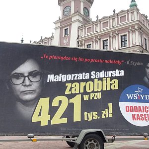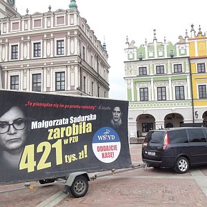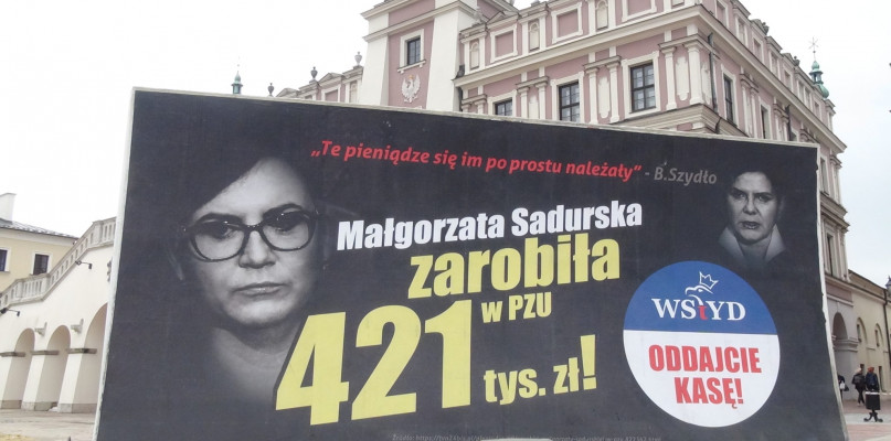 Konwój Wstydu to akcja Platformy Obywatelskiej, która w połowie marca rozpoczęła się w Warszawie, teraz rozszerza się na teren całego kraju. Plakaty przedstawiające 50 polityków i działaczy związanych z partią rządzącą zawierają informacje o premiach finansowych, jakie otrzymali oni z budżetu państwa. Bohaterem eventu w Zamościu miał być minister rolnictwa Krzysztof Jurgiel, jednak ostatecznie konwój przyjechał do Zamościa z banerem dotyczącym Małgorzaty Sadurskiej, byłej minister w Kancelarii Prezydenta.