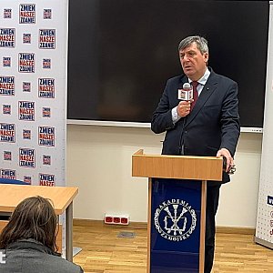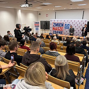 Europosłowie PiS pod ostrzałem pytań o UE, SAFE i pomoc dla Ukrainy! W środę (25.02) w Akademii Zamojskiej odbyło się spotkanie z cyklu „Zmień nasze zdanie". Na sali zjawiło się około 140 osób – głównie młodzież, ale nie brakowało też m.in. seniorów, gotowych konfrontować poglądy polityków. Gośćmi spotkania byli Patryk Jaki i Tobiasz Bocheński.