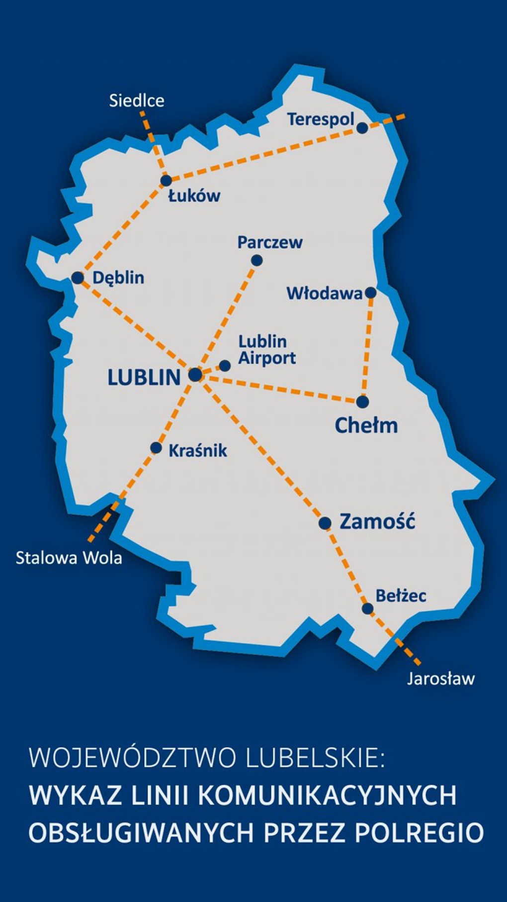 Umowa na świadczenie usług publicznych w zakresie kolejowych przewozów pasażerskich została zawarta pomiędzy Województwem Lubelskim, a POLREGIO na lata 2021-2030. Całkowita wartość umowy wynosi ponad 1,14 mld zł (dokładnie 1 144 382 000,00 złotych) i dotyczy planowanej pracy eksploatacyjnej na poziomie 29 919 782,29 pockm (pociągo/kilometrów). W jej ramach POLREGIO będzie realizować przewozy pasażerskie w województwie lubelskim na następujących liniach komunikacyjnych: