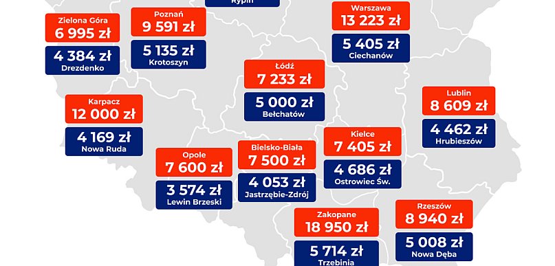 Rankomat.pl przygotował „raport pogodowy” dla rynku nieruchomości. Najbardziej upalnym miastem Polski pozostaje niezmiennie Warszawa, w której średnia cena 1m2 mieszkania wynosi już ponad 13,2 tys. zł. Na przeciwnym krańcu znajduje się Bydgoszcz i Gorzów Wielkopolski, które oferują kupującym przyjemny chłód cenowy. Nieruchomościowy klimat najszybciej zmienia się w Opolu, gdzie cena 1m2 wzrosła w ciągu kwartału o ponad 1 tys. zł. Najbardziej stabilną aurą cieszy się Toruń, w którym w tym samym okresie nieruchomości zdrożały średnio tylko o 32 zł za 1m2.