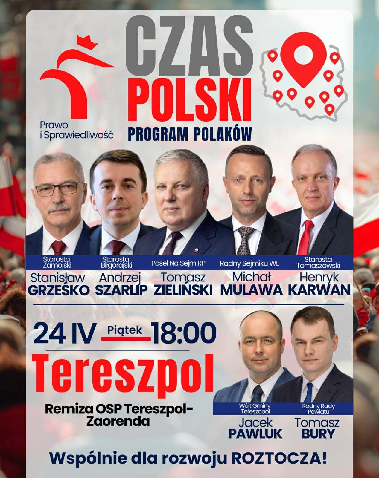 W piątek o godz. 18:00 w Tereszpolu rozpocznie się otwarta debata, która ma być przestrzenią rzeczowej rozmowy o najważniejszych wyzwaniach stojących przed regionem. W wydarzeniu udział zapowiedzieli parlamentarzyści, przedstawiciele samorządów, lokalni przedsiębiorcy oraz mieszkańcy. Organizatorzy podkreślają, że spotkanie ma mieć praktyczny charakter – bez politycznych sloganów i pustych deklaracji. W centrum uwagi znajdą się konkretne kwestie, które od lat budzą zainteresowanie lokalnej społeczności.