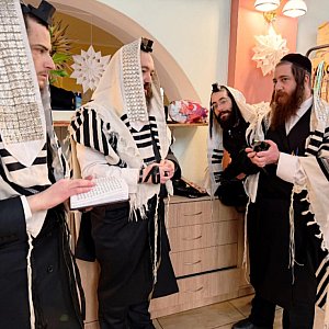 Po modlitwach na cmentarzu chasydzi odwiedzili również synagogę w Cieszanowie. Choć obecnie budynek pełni funkcję dziennego domu pobytu, pielgrzymi – zgodnie z ustaleniami z gminą – mają możliwość modlitwy w tym historycznym miejscu. Podczas wizyty dopytywali także o lokalizację dawnej mykwy, czyli rytualnej łaźni.
