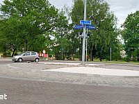 Zróżnicowanie kolorystyczne wyznacza strefy funkcjonale, oddzielające ruch pieszy i kołowy.