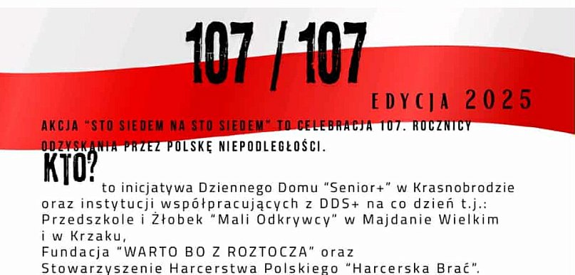 Z okazji 107. rocznicy odzyskania przez Polskę niepodległości rusza wyjątkowa inicjatywa patriotyczna pod hasłem „107 na 107”. To już kolejna edycja akcji, która łączy pokolenia i krzewi wśród mieszkańców regionu ducha miłości do Ojczyzny.