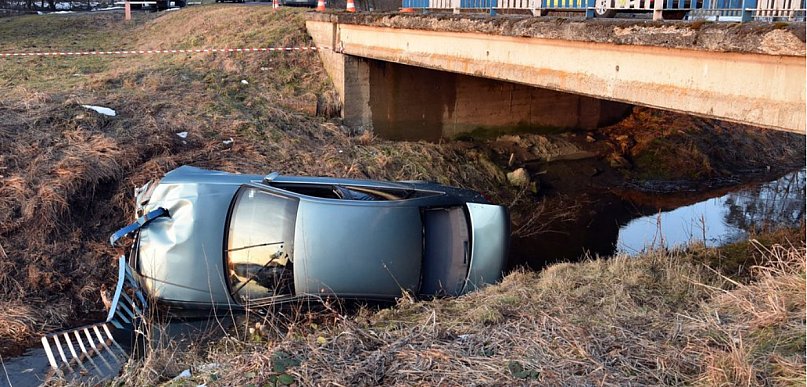 Rozbił bariery i wpadł audi do rzeki