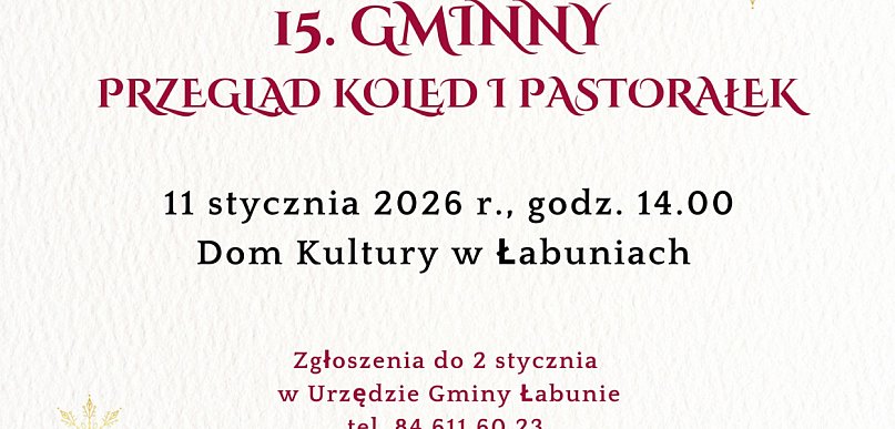 XV Gminny Przegląd Kolęd i Pastorałek w Łabuniach – zaproszenie do wspólnego kolędowania.