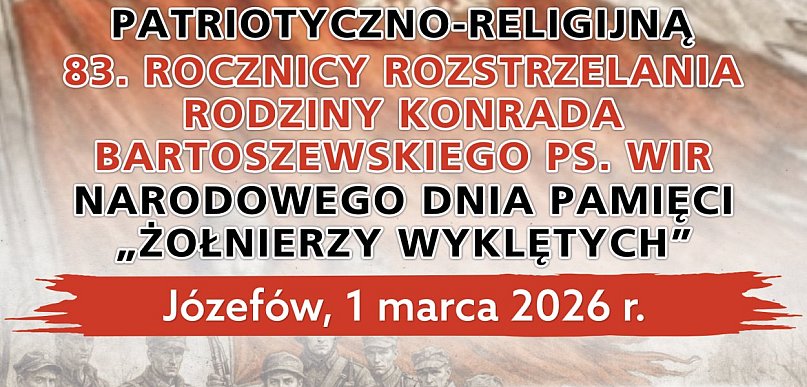 1 marca 2026 roku w Zamościu oraz Józefowie odbędą się uroczyste obchody Narodowy Dzień Pamięci Żołnierzy Wyklętych, upamiętniające bohaterów podziemia niepodległościowego oraz 83. rocznicę tragicznych wydarzeń związanych z rodziną Konrada Bartoszewskiego ps. „Wir”. Organizatorzy zapraszają mieszkańców regionu do wspólnego oddania hołdu Żołnierzom Niezłomnym.