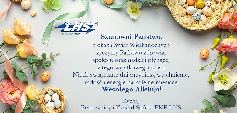 Z okazji Świąt Wielkanocnych Pracownicy i Zarząd Spółki PKP LHS składają Państwu życzenia.