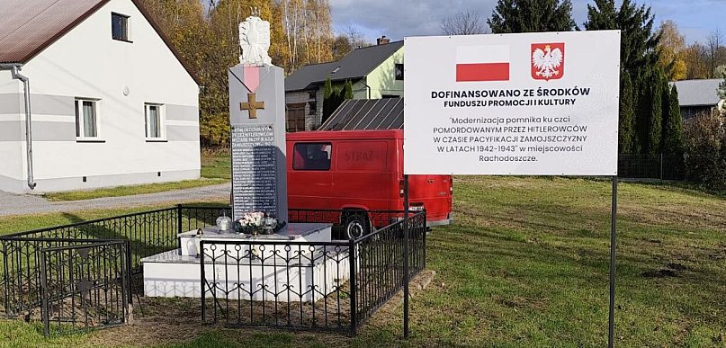 Gmina Adamów otrzymała dofinansowanie w wysokości 93 600,00 zł ze środków Ministra Kultury i Dziedzictwa Narodowego pochodzących z Funduszu Promocji Kultury na realizację zadania pn. „Modernizacja pomnika ku czci Pomordowanym przez Hitlerowców w czasie pacyfikacji Zamojszczyzny w latach 1942–1943” w miejscowości Rachodoszcze.