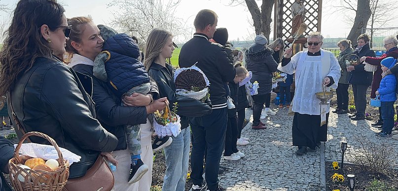 Wielka Sobota 2026 w parafii Dub w powiecie zamojskim miała wyjątkowy charakter. Z powodu trwającego remontu XVIII-wiecznego drewnianego kościoła wierni przynieśli wielkanocne koszyczki do poświęcenia nie do świątyni, lecz do Ogrodu św. Józefa – miejsca modlitwy, refleksji i spotkania lokalnej wspólnoty.