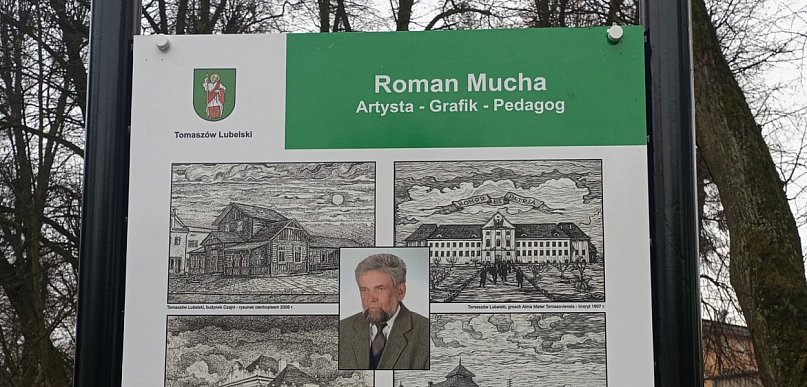 Na skwerze im. Romana Muchy w Tomaszowie Lubelskim ustawiono nową tablicę informacyjną poświęconą temu wybitnemu grafikowi, ilustratorowi i pedagogowi. Jej powstanie było możliwe dzięki inicjatywie Burmistrza Miasta Wojciecha Żukowskiego oraz Radnego Rady Miasta Janusza Brodowskiego.